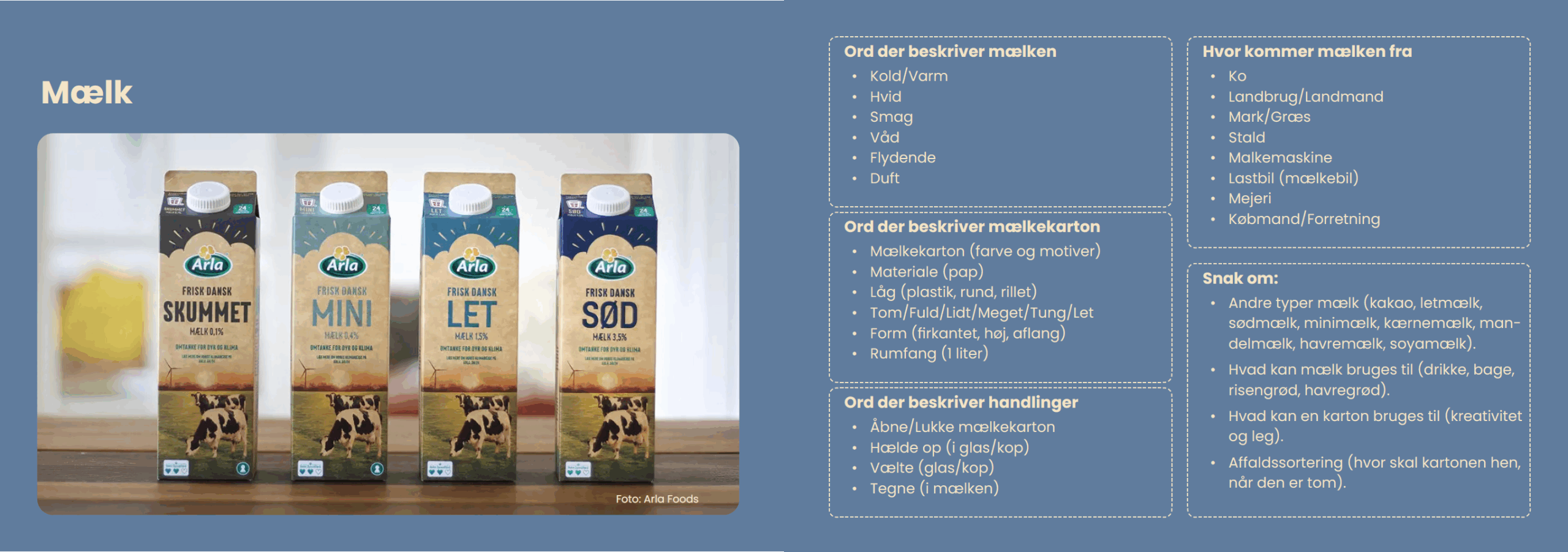 Bogen kan både bruges som en ordinspirationsbog, men også som en billedbog, hvor I kan tale om billederne i bogen.
