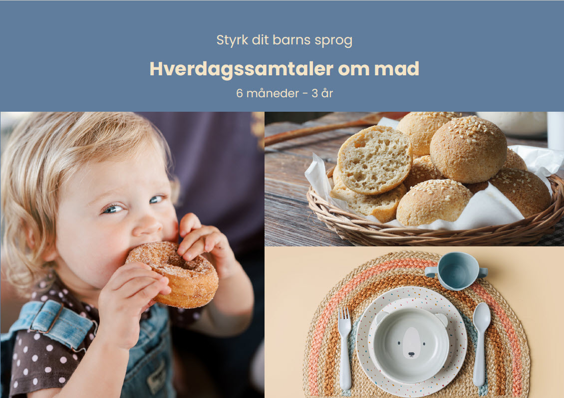 ”Styrk dit barns sprog – Hverdagssamtaler om mad” er en ordinspirationsbog. Bogen hjælper dig med at styrke og udvide dit barns ordforråd gennem hverdagssamtaler. Bogen kommer med bud på ord, som du kan bruge, når du taler med dit barn om, hvad I spiser.